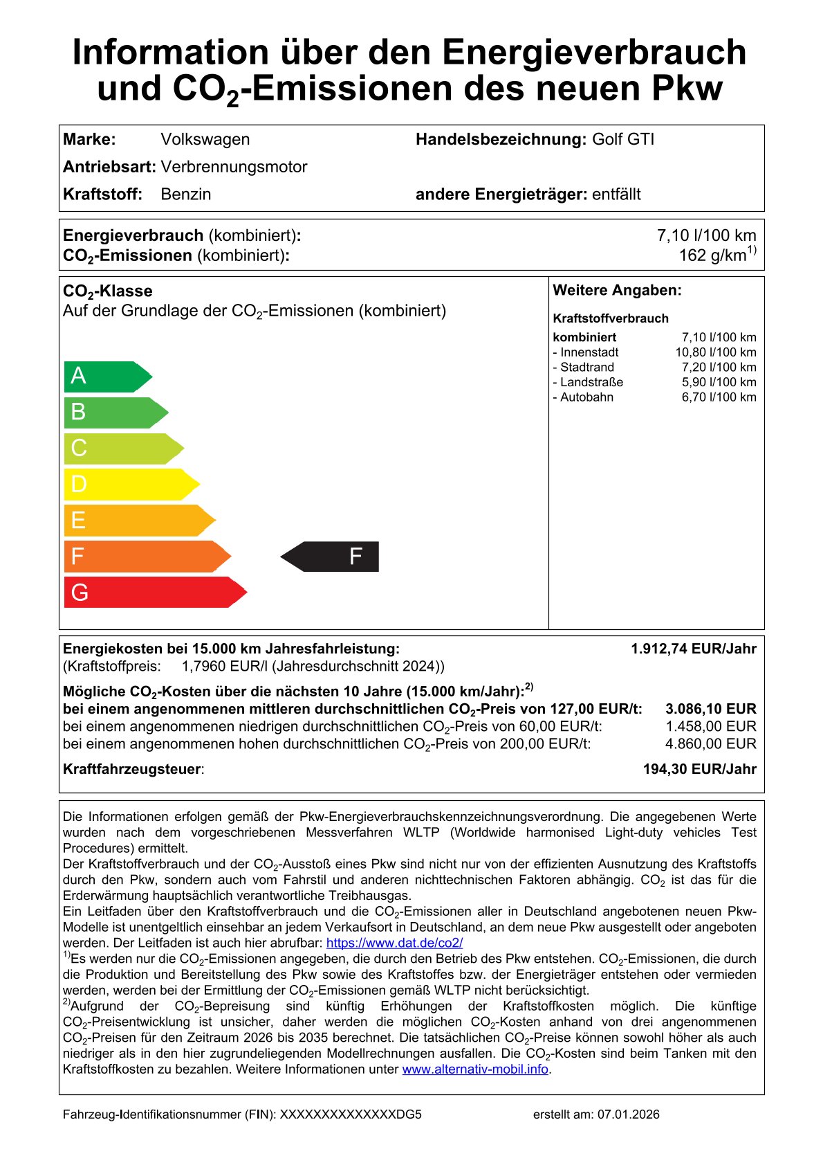 (Auf Wunsch veränderbar) - Jährliche Fahrleistung: 10.000 km